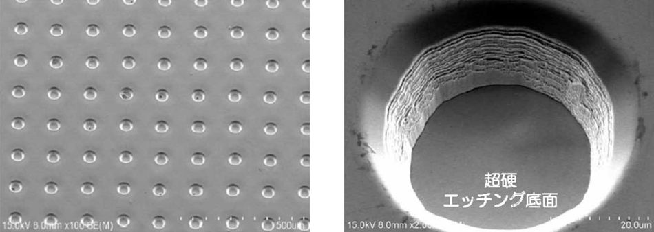 パターン寸法:穴径約60um スペース90um エッチング深さ約16um